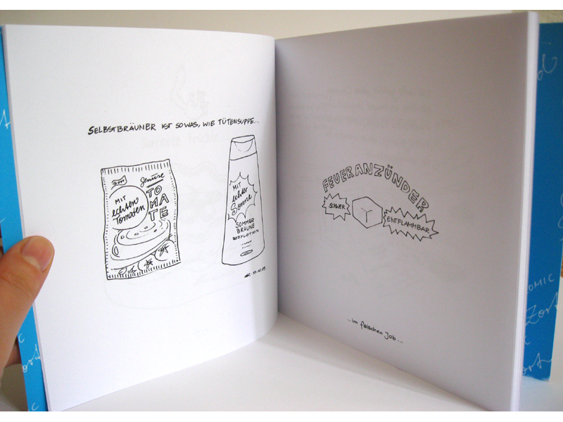 For this book I got a diploma in fine arts… although nobody read it. I basically got my diploma for the accompanying origami-sculpture and a concept based around the question how you can find inspiration for your art in everyday situations. The book is quite funny, though. Buy it or read the comics of 2009 and 2010 were they were first published: comic-sport.blogspot.com
